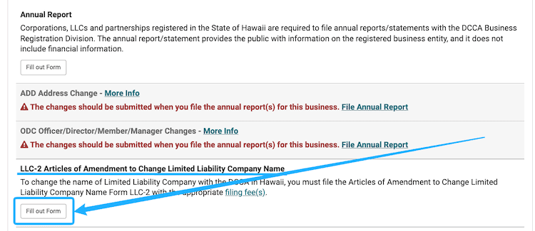 Step 2: File the Hawaii LLC name change form