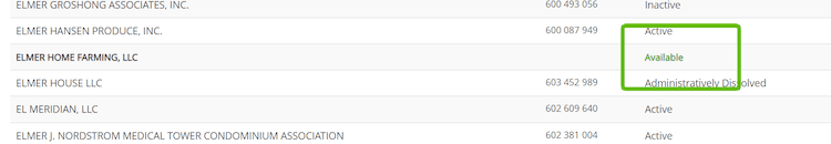 The system will show you any business names that are similar to the one you entered. Your new name should say “Available” next to it. That means your new name is distinguishable (not the same or too similar to other names already in use).