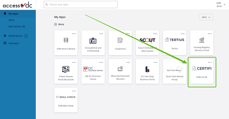 You will need an Access DC login to use Certifi. To access Certifi from your Access DC dashboard, just look for the DOB Certifi button: