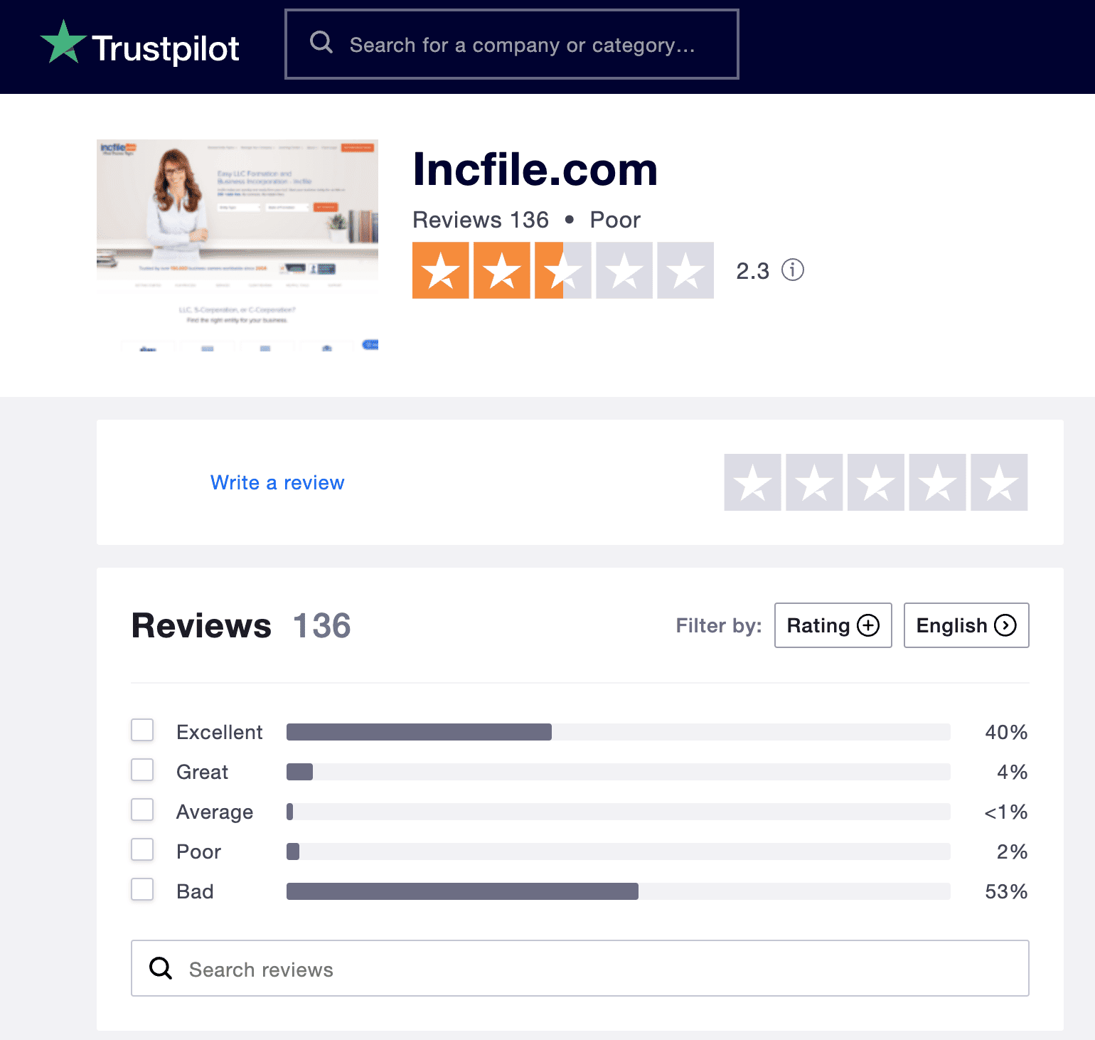 This site is not factual. INCFILE has a 4.7 on Trust Pilot. This site is clearly trying to sell a service from another that most likely paid them.