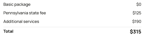 - Basic package ($0 + state fee)