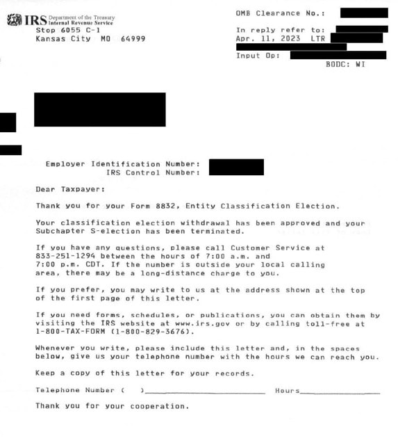 There are many terms used to describe an LLC revoking its S-Corporation election with the IRS: